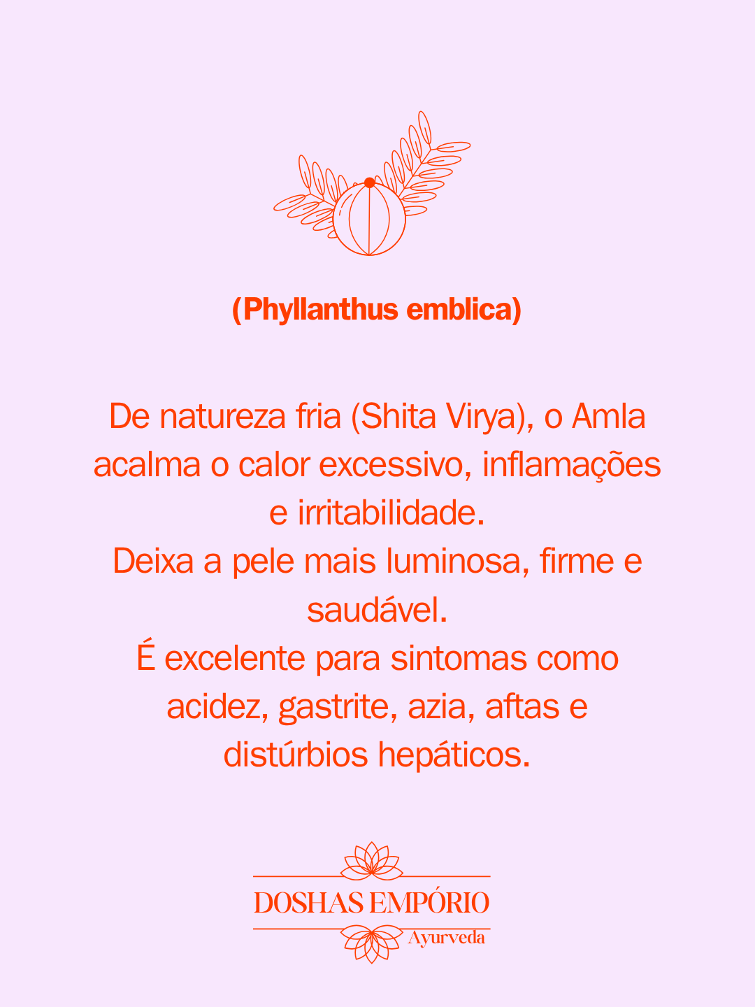 De natureza fria (Shita Virya), o Amla acalma o calor excessivo, inflamações e irritabilidade.